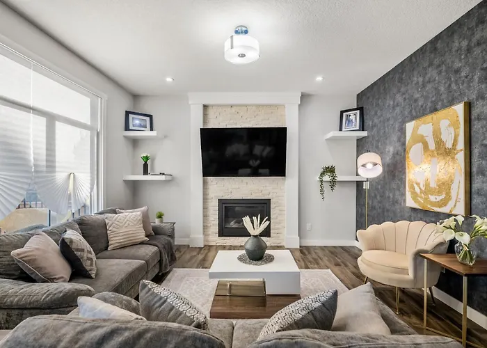 Luxury Retreat For Large Groupsヴィラは,カルガリ-国際空港から自動車で40分の宿泊施設です. このヴィラは4室のベッドル-ムの他に顧客が利用可能な電子レンジ と冷蔵庫を提供する器具でいっぱいの台所があります.